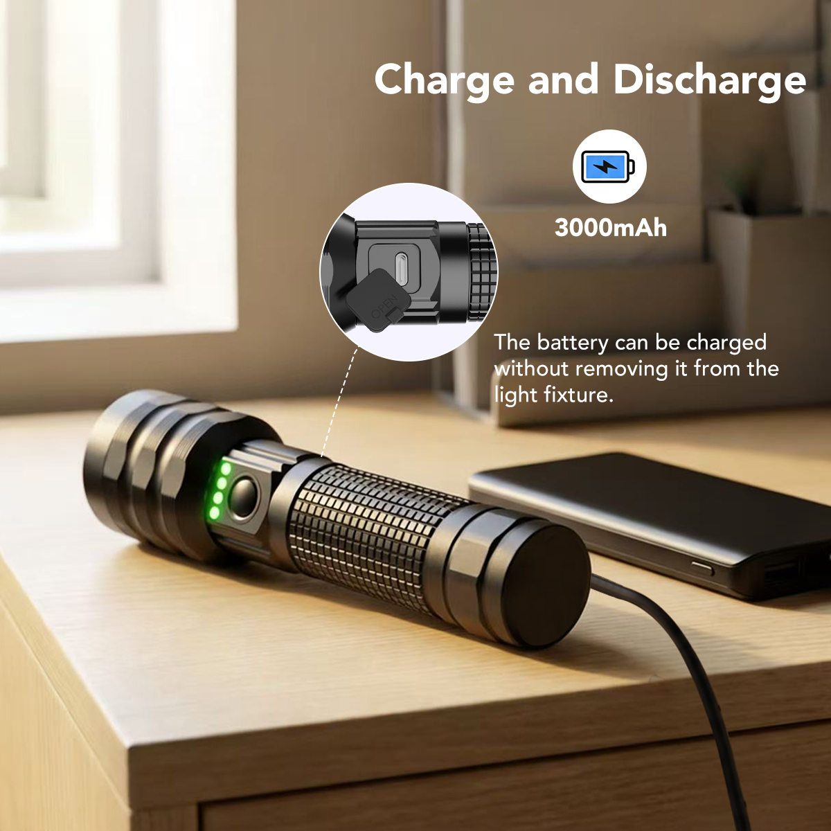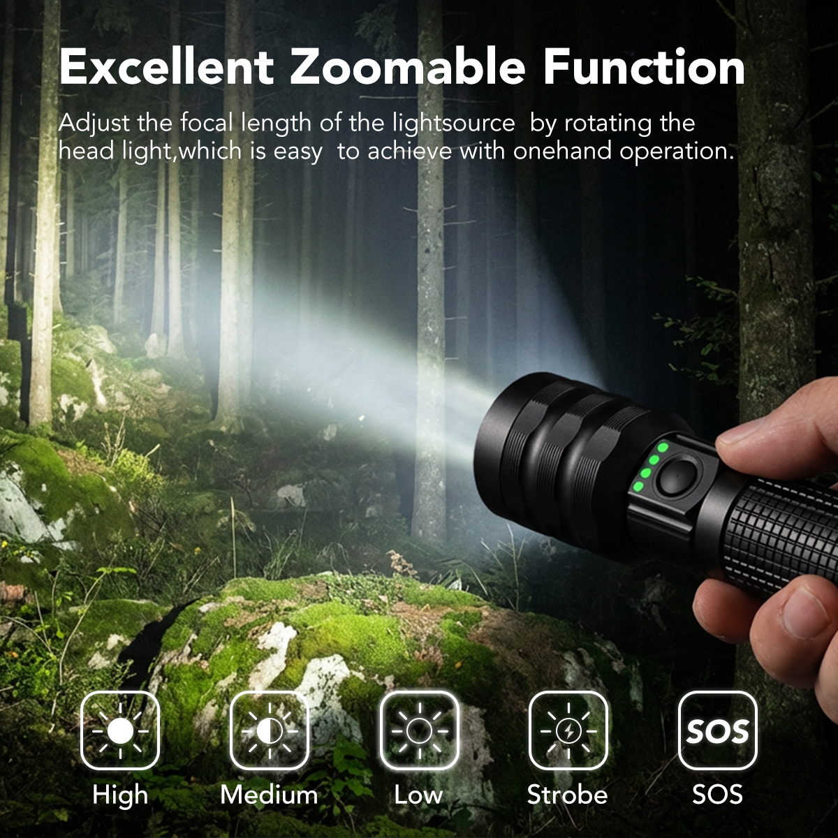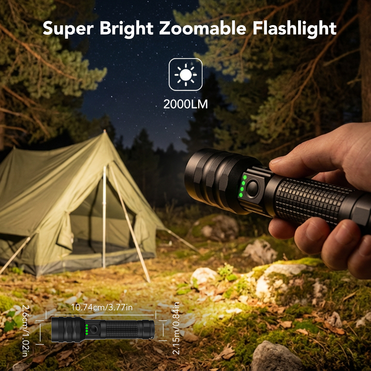 C1 2000LM Z MOŻLIWOŚCIĄ POWIĘKSZENIA - TELESKOPOWA LATARKA Z TELESKOPOWYM OGNISKIEM, ŁADOWALNA LAMPA NA ZEWNĄTRZ 21700